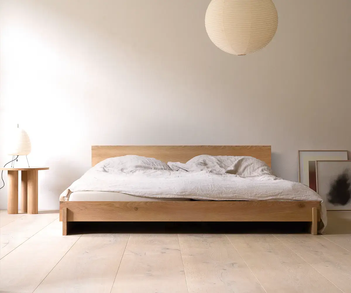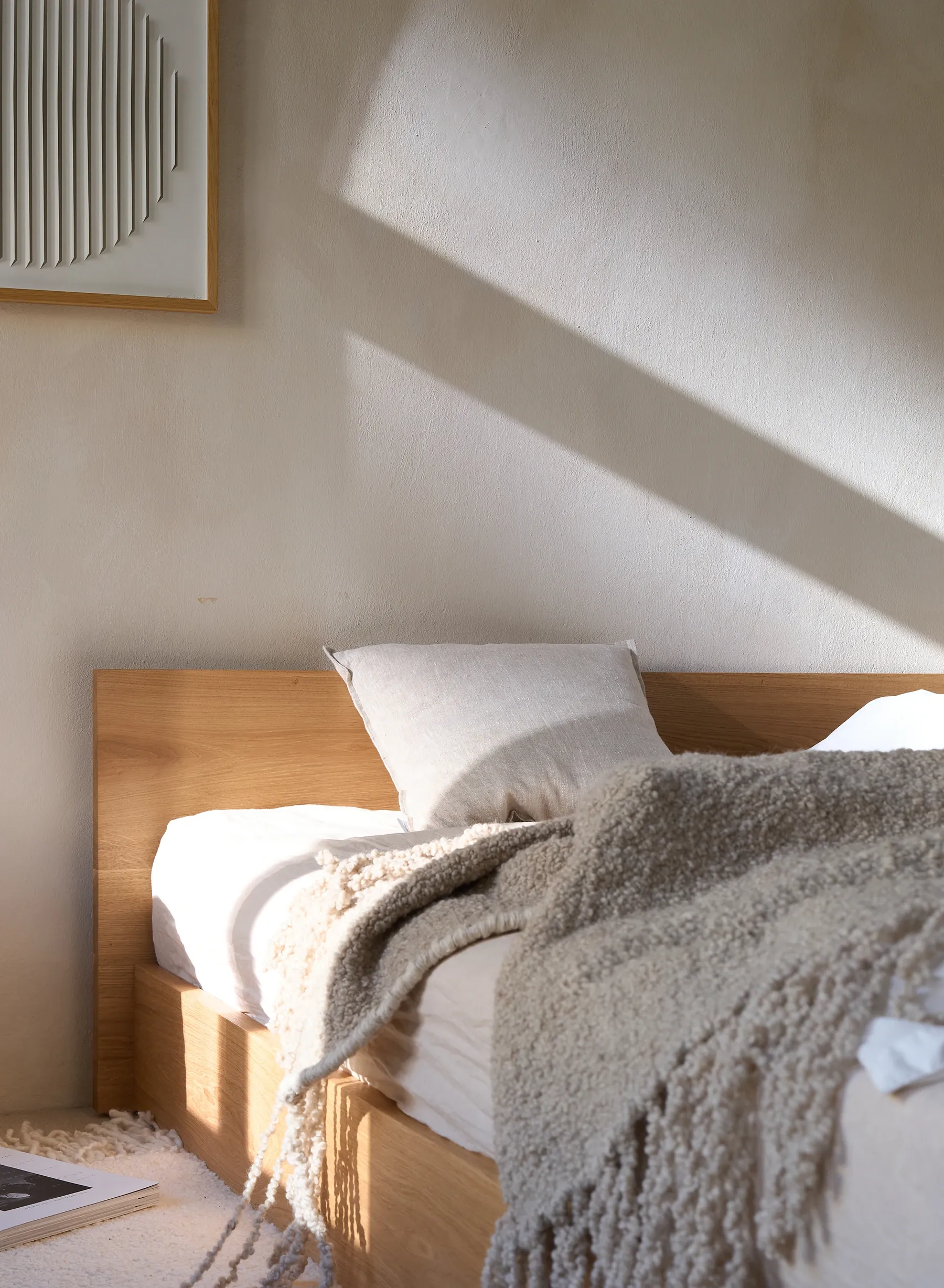 Ruhe finden, Kraft tanken - lass die Natur in dein Schlafzimmer. Geniesse ihre Urwüchsigkeit. Das Ease Bed aus massiver Eiche strahlt wie ein Anker der Ruhe inmitten des Pulses des urbanen Lebens Gelassenheit aus. Die charakteristische Holzmaserung der Eiche unterstreicht die Urwüchsigkeit der Natur, die unser Atelier seit der Gründung inspiriert hat.